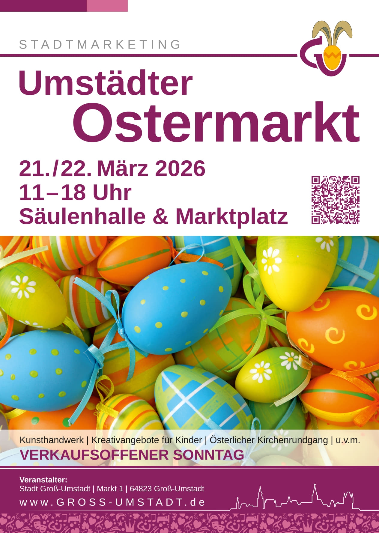 Am Sonntag, den 22. März können die Gäste des Umstädter Ostermarktes im Rahmen des verkaufsoffenen Sonntags von 12 bis 17 Uhr in den teilnehmenden Geschäften ausgiebig stöbern und einkaufen.