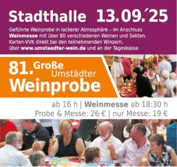 gemeinsam den Rahmen des Umstädter Herbstmarktes. Jeder ist herzlichen willkommen, wer sich schon vorher mit Umstädter Wein einstimmen und die ansässigen Winzer, sowie regionalen Direktvermarkter und Hobbyhandwerker unterstützen möchte.