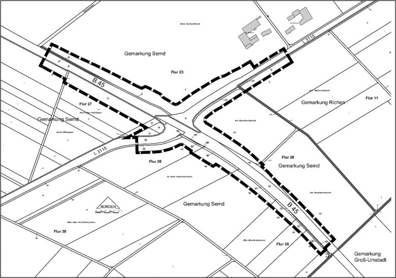 Nach den Ergebnissen einer im Jahr 2022 von Hessen Mobil Straßen- und Verkehrsmanagement, Darmstadt, durchgeführten Verkehrszählung sind die Knotenpunkte der Bundesstraße B 45 zwischen Dieburg und Groß-Umstadt an der Grenze ihrer Leistungsfähigkeit bzw. überlastet. Hessen Mobil strebt daher eine bestandsnahe Ertüchtigung des Knotenpunktes der B 45 mit der Landesstraße L 3115 (Semder Kreuz) an, um hier eine ausreichende Leistungsfähigkeit der B 45 sowie einen barrierefreien Ausbau der beiden Bushaltestellen „Groß-Umstadt/Abzweig Semd“ an der B 45 zu ermöglichen.
