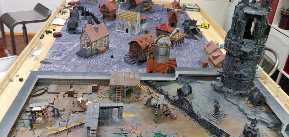 Anders als beim individuellen Spielen von Computerspielen ist die psychische Distanz bei „Warhammer“ so groß, dass ein Risiko der Sucht oder zu starker Identifikation mit der Spielwelt nicht gegeben ist. Im offenen Treff im JUZ können Jugendliche ab 12 Jahren am Tabletop spielen oder werkeln. Auf dem Bild zu sehen ist die Mittelalter/Fantasy-Welt.