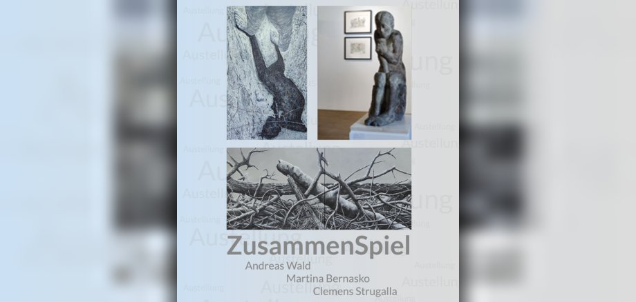 Ausstellung „Zusammenspiel“ von Martina Bernasko und Andreas Wald, Malerei sowie Clemens Maximilian Strugalla, Skulpturen
