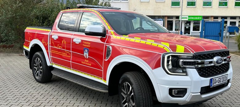 Pick-up für Sonderaufgaben: Der Feuerwehrverein Groß-Umstadt finanzierte ein multifunktionales Einsatzfahrzeug vollständig aus Vereinsmitteln und Spenden. Die Kosten beliefen sich auf 60.000 Euro – durch einen Behördenrabatt konnte die Stadt das Fahrzeug kostengünstig anschaffen. Die offizielle Übergabe fand am 5. Oktober 2024 im Rahmen des Oktoberfestes statt.